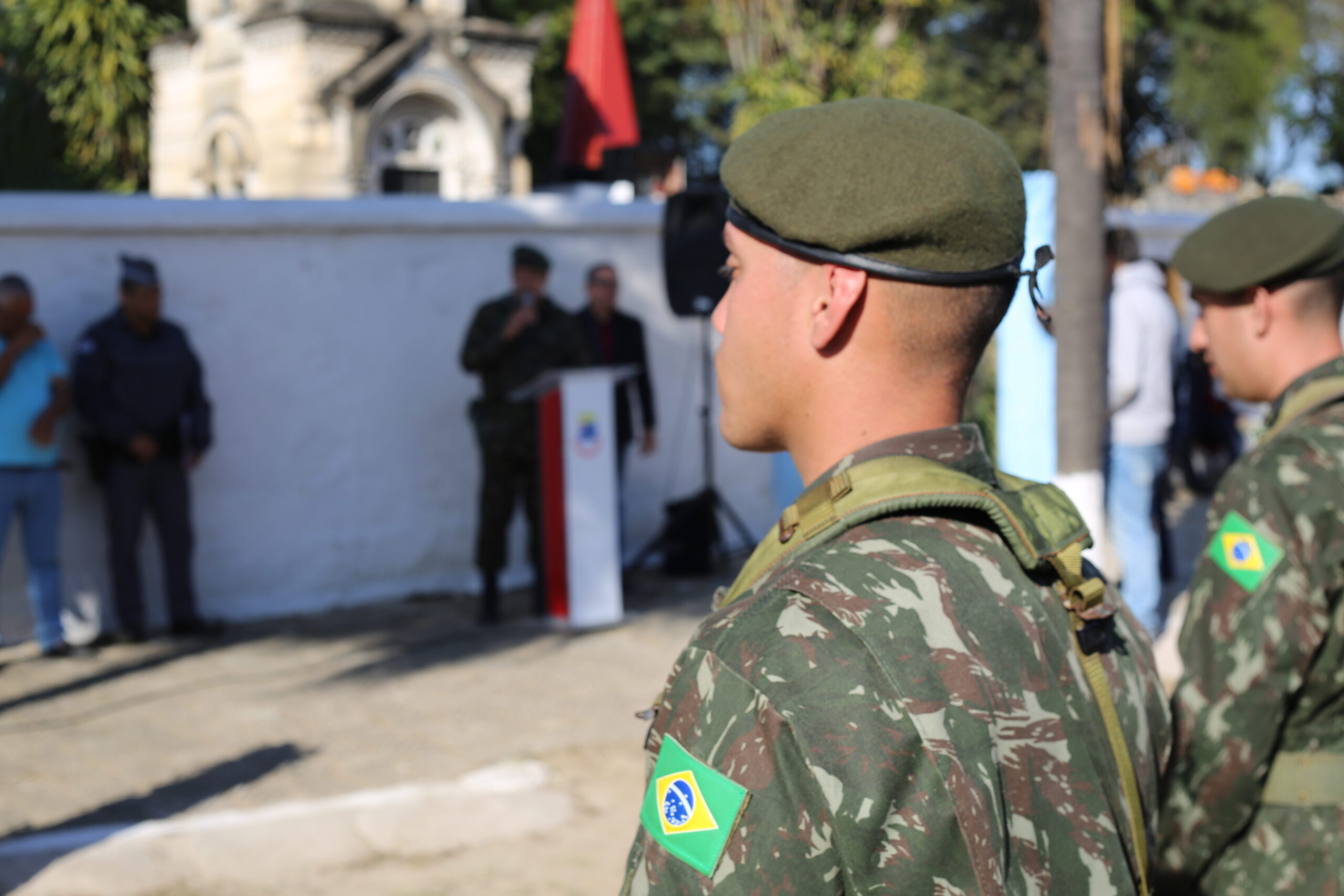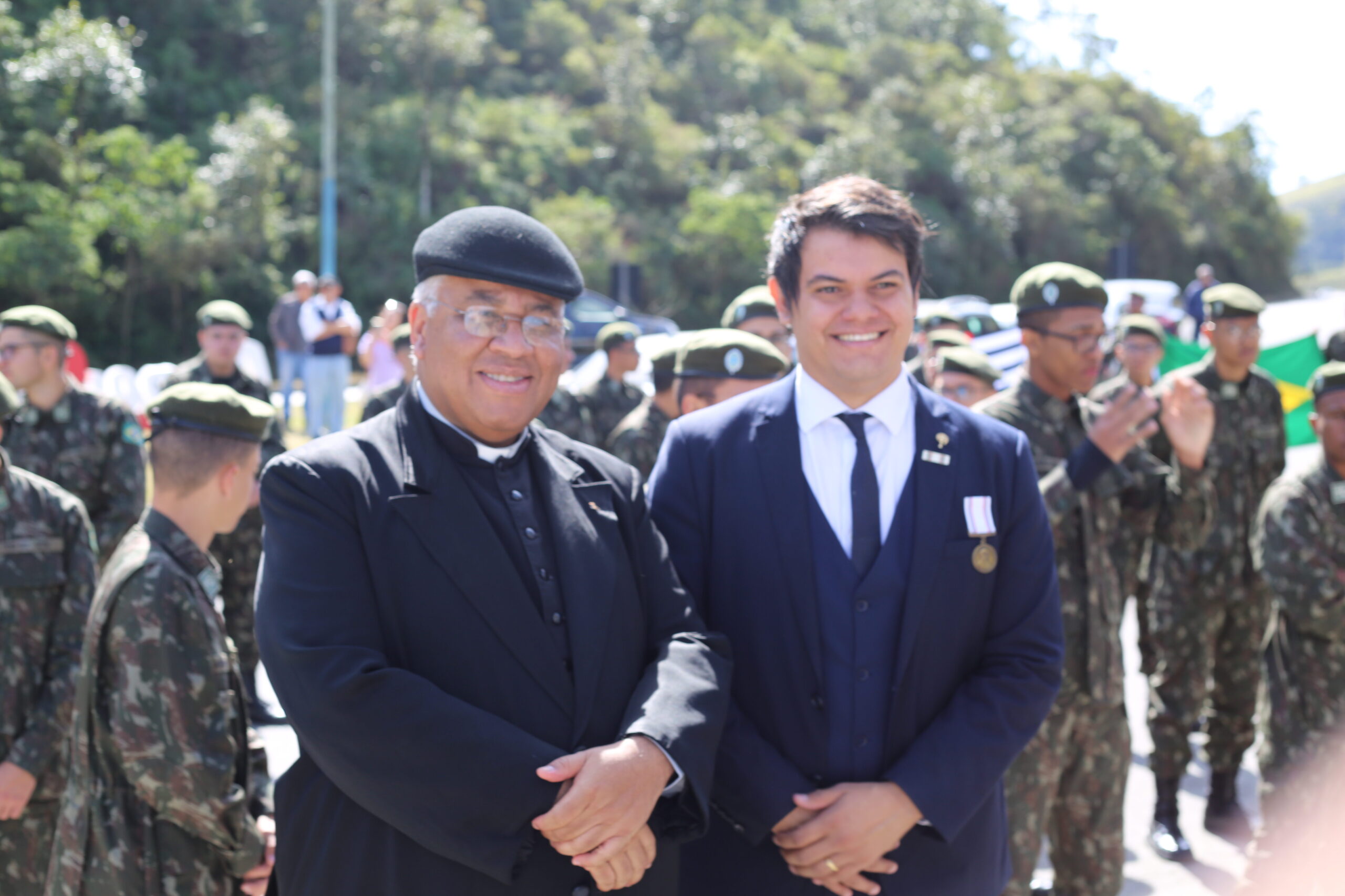 Na ocasião foi tocado o hino nacional e uma salva de 1 minuto de Sirenes pelas viaturas presentes e ali também o prefeito Thales foi presenteado com uma medalhe de antigos combatentes.
