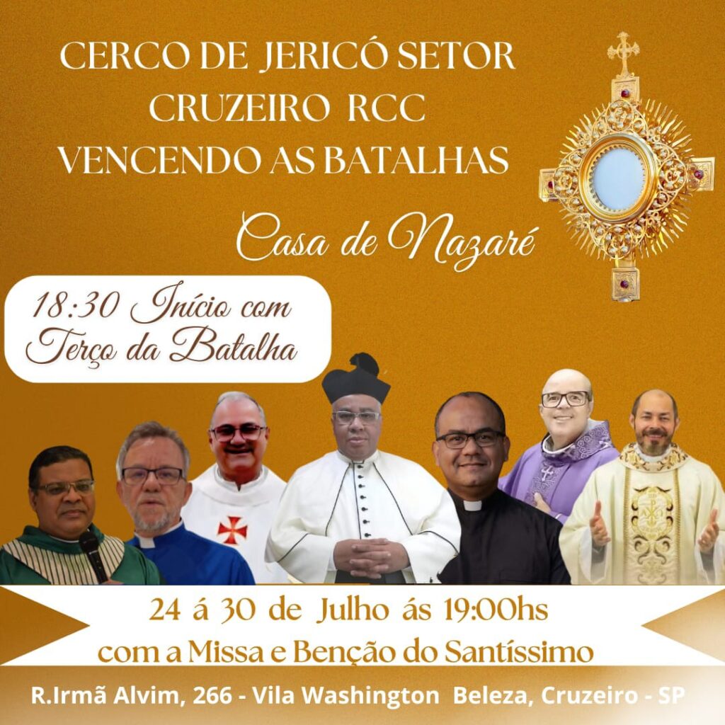 O Cerco de Jericó do Setor Cruzeiro terá início nesta quinta-feira, 30 de julho, na Casa de Nazaré, localizada no Morro dos Ingleses. A programação está prevista para começar às 18h30, com a recitação do terço, seguida da celebração da missa.