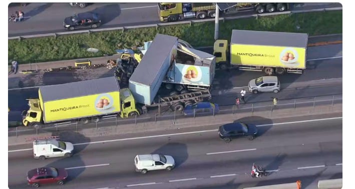 Engavetamento com caminhões que transportavam ovos interdita pista da Via Dutra