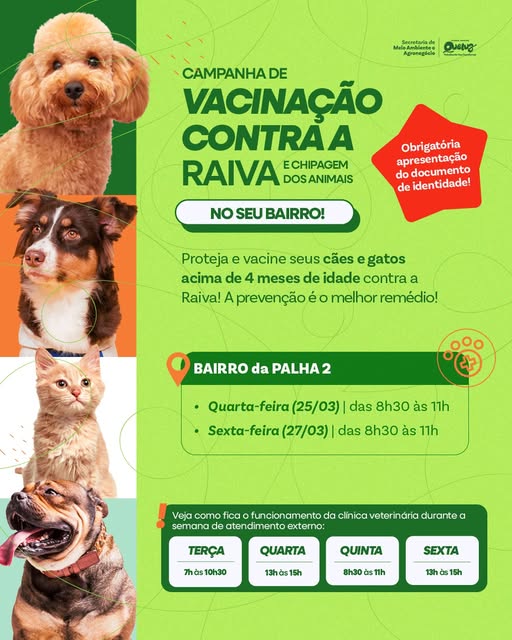 A Prefeitura de Queluz realiza nesta sexta-feira, 27 de março, uma ação de vacinação contra a raiva e chipagem de animais.